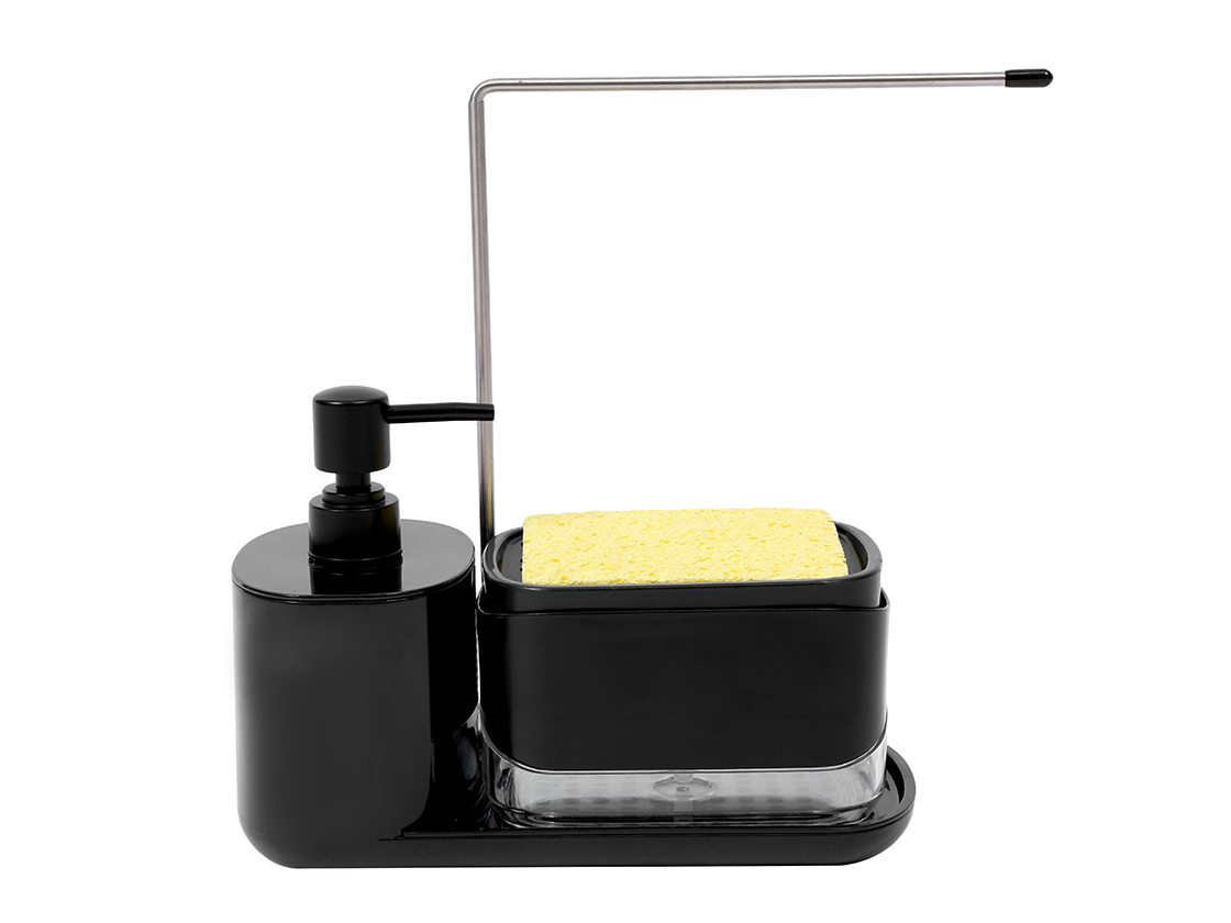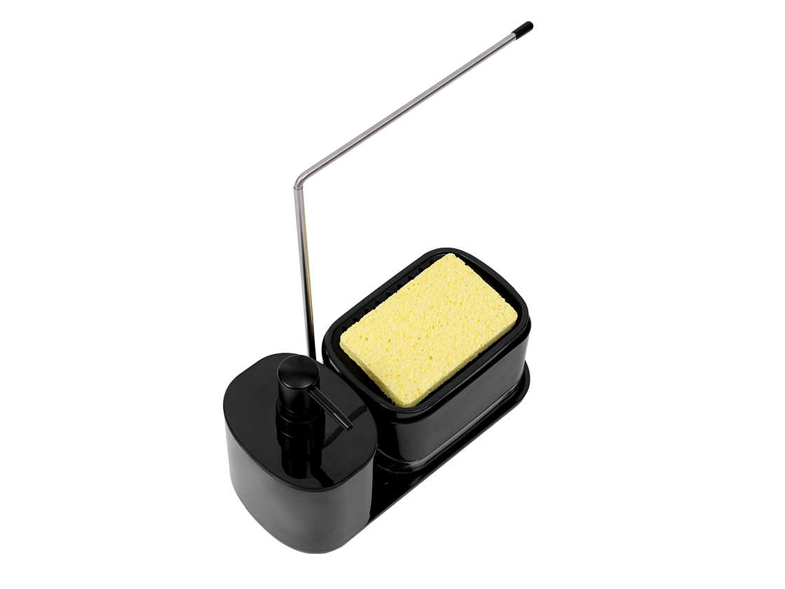– Incluye depósito para esponja, soporte para colgar rejillas y dispensador de jabón